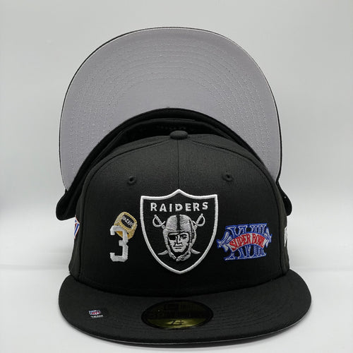 59Fifty Las Vegas Raiders Black 3x Super Bowl Champions Fitted Hat - Gray UV