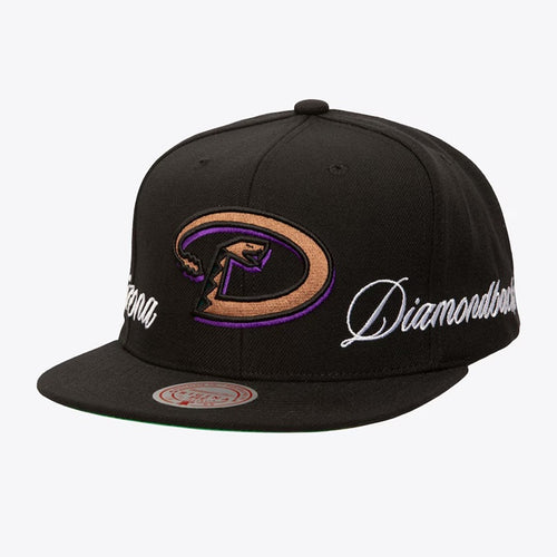 Just Don x MLB Arizona Diamondbacks Lux Script Snapback Hat - Black/Satin Green UV