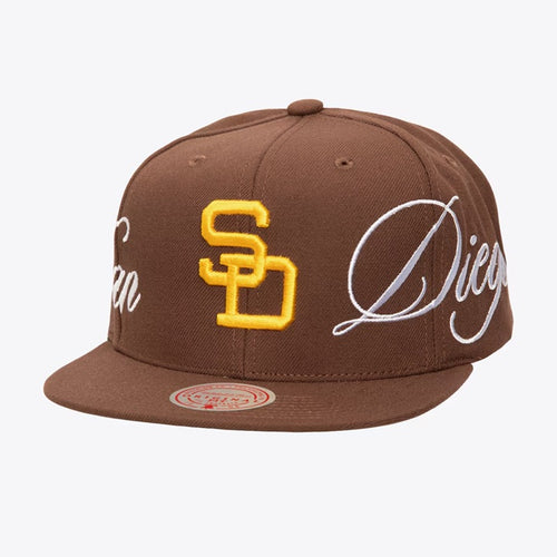 Just Don x MLB San Diego Padres Lux Script Snapback Hat - Brown/Satin Green UV
