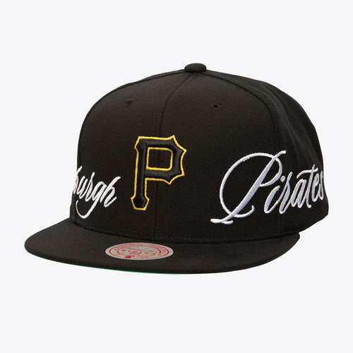 Just Don x MLB Pittsburgh Pirates Lux Script Snapback Hat - Black/Satin Green UV
